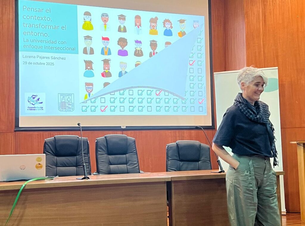 Durant l’última setmana d’octubre, la Vicerectoria de Recerca, Desenvolupament i Creació Artística i el projecte InES “Coneixement + Gènere” de la Universitat Austral de Xile (UACh), van impulsar dues activitats clau per promoure una mirada crítica i transformadora sobre l’equitat de gènere en l’àmbit universitari, on es va comptar com a formadora i ponent amb Lorena Pajares, investigadora de Notus.